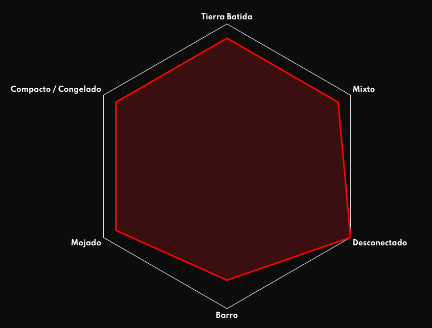 Perfil agresivo con amplio espacio entre los tacos de la banda de rodadura para terrenos mixtos