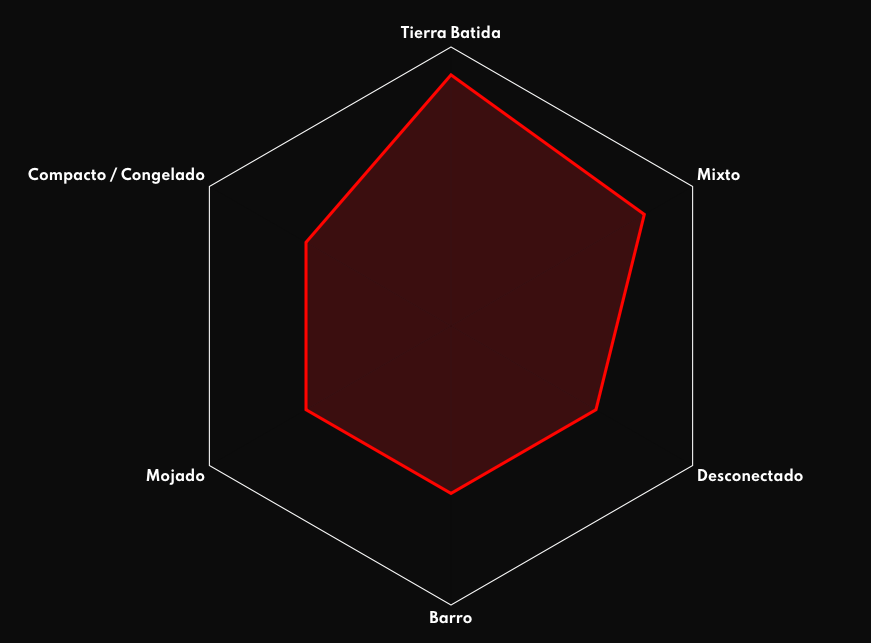 Los tacos de la banda de rodadura se encuentran bien espaciados tanto en el centro como en los laterales para un mayor agarre en las curvas